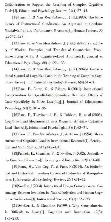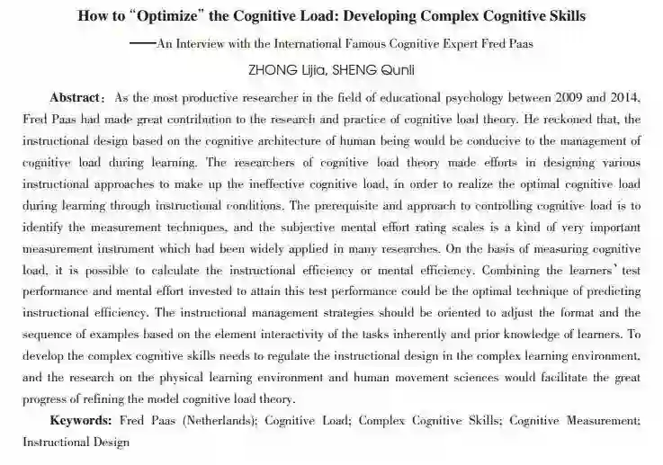 关键词:弗莱德·帕斯(荷兰);认知负荷;综合认知能力;认知测量;教学设计