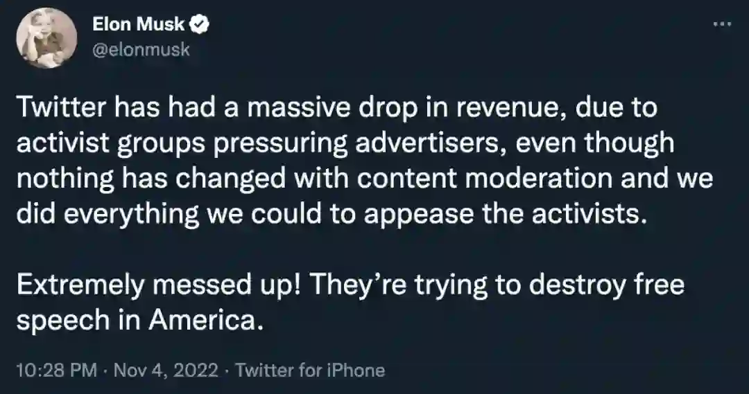 还有很多广告商退出推特平台,导致推特公司收入大幅下降。