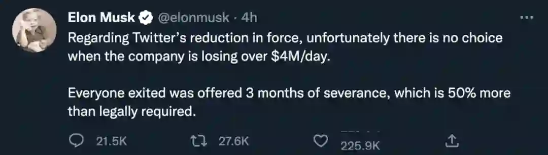 根据被解雇员工收到的电子邮件,这些员工将继续获得薪资与福利,直到推特满足美国联邦法律的大规模裁员要求。马斯克承诺所有被解雇员工将获得 3 个月的基本工资作为遣散费。