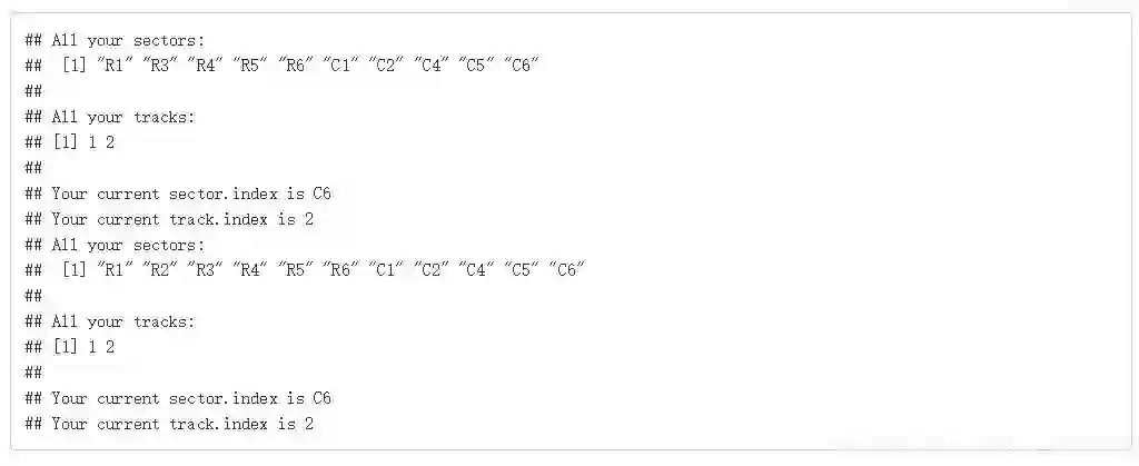 chordDiagram()默认创建2个外围轨道,一个标签(列名和行名)轨道,一个带有刻度线的网格轨道circos.info()显示的"All your tracks"下面就是所有的轨道,
