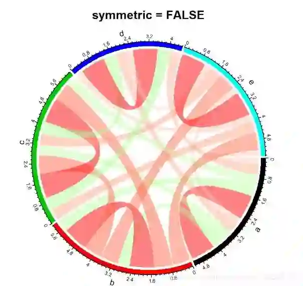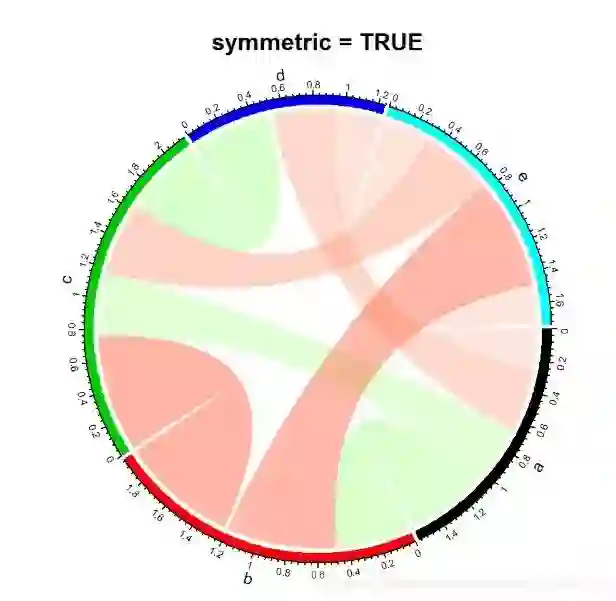 chordDiagram(cor_mat, grid.col = 1:5, symmetric = TRUE, col = col_fun)