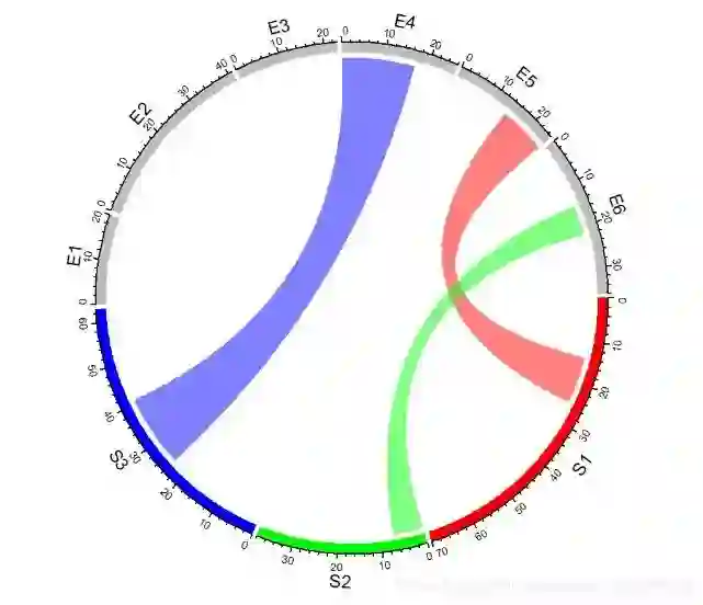 chordDiagram(mat, grid.col = grid_col, transparency = 0, link.rank = rank(mat)) # 用mat中的秩进行排序,秩最大先添加
