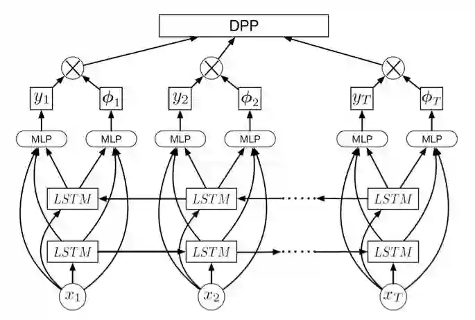 下面我们用一个例子来简述静态视频摘要的过程。2016 年 CVPR 的文章《Video Summarization with LongShort-term Memory》就利用了 LSTM 来完成视频摘要。其主要模型如下: