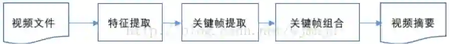 例如,公开课的视频中,提取出含有完整 PPT 的帧。我们将含有关键信息的所有帧提供给浏览者,可以使其在较短的时间内了解到较长视频的主要内容。又例如,将一个 2 小时的电影提取出其关键部分,组合成一个 2 分钟的预告片,也属于静态视频摘要。其提取流程大致如下: