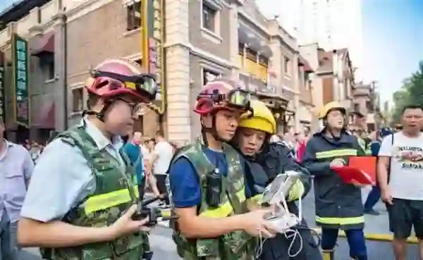 近日,武汉原江汉饭店外立面改造引发火灾,楼顶烧塌,无人员伤亡。在灭火过程中,包括大疆无人机在内的一批高科技装备投入实战,帮助灭火。