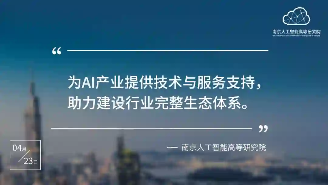 南京人工智能高等研究院的另一使命,是为人工智能产业升级、科技创新提供有力的技术与服务支持,助力建设AI+行业应用及产业创新的完整生态体系。