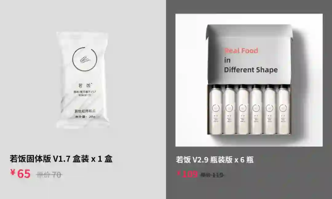 作为一种代餐食品,若饭将你每日正餐所需的矿物质、维生素、膳食纤维等营养成分均衡调配,并最终浓缩为可直接入腹的饮品,避免了传统饮食可能带来的高盐、高热量、高糖等问题。每瓶若饭可提供持续 4 小时以上的饱腹感,1 分钟就能 9 分饱。
