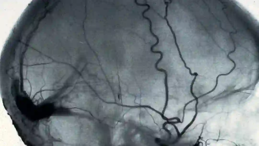 △ 血管造影术(angiogram)拍到的脑部血管。 血管造影术是利用X光观察血管堵塞的医学方法。