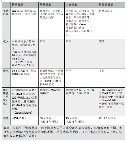 从数据来看,2018年的中国数字音乐市场,已经从QQ音乐、网易云音乐、虾米音乐、百度音乐这些平台的竞争,变成了多家集团的综合音乐服务争锋。除了腾讯系、阿里系、网易系,还有一个脱胎于传统音乐服务行业、并且有百度资本加持的玩家——太合音乐,也在暗中发力。