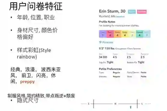 图中可以看到,对一个用户会搜集他的数据,包括年龄、位置、职业,还有用户的身材尺寸,颜色偏好等等。