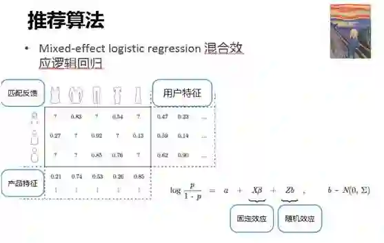 如下图,Stitch Fix 主算法 Mixed-effect logistic regression 混合效应逻辑回归: