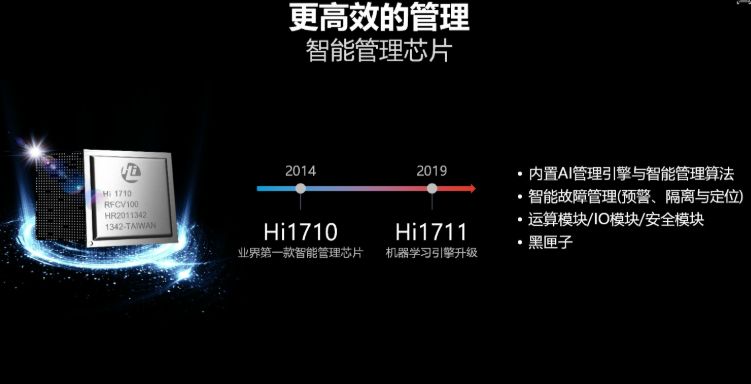 大会上,华为宣布将于 2019 年推出全球首个智能管理芯片,不仅内建 AI 管理引擎和智能管理算法,可能从服务器全局进行针对故障的预警、隔离与定位等管理。而该管理芯片则是包含了运算、IO 以及安全等三大模块。