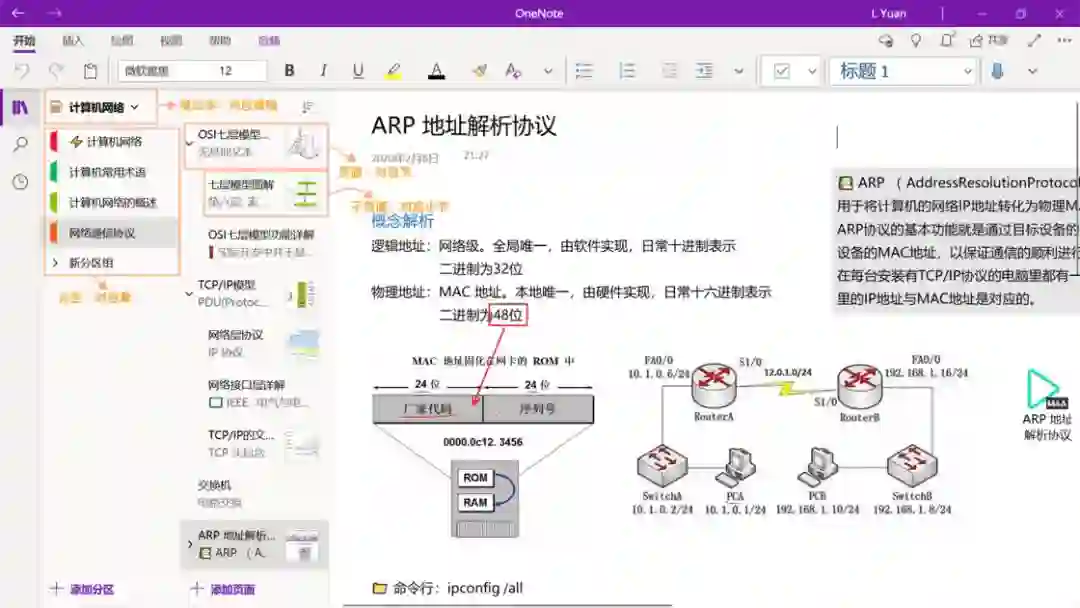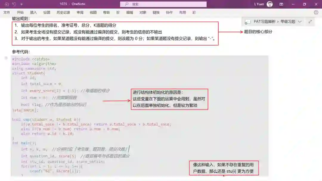对电子笔记的执念产生于高中备考时期,那时我的纸质笔记很多,内容繁杂且查找不易,想着如果能用电子笔记管理该有多好。进入大学后,我开始尝试使用笔记软件来进行知识管理。印象笔记是我第一个接触到的笔记软件,因为不习惯其过少的层级管理而放弃使用。慢慢地我又接触到了为知笔记、有道云笔记等其他各种笔记软件,但它们都不适合课堂上灵活的记录形式,所以我又回到了纸质笔记。后来在准备 PAT 时,需要一个可以自由标注的笔记软件来记录题目与解题过程。在这种需求下我找到了 OneNote。通过详细的使用手册,我突然意识到这才是真正的「电子笔记本」,在课堂上的使用体验完全不同于其他软件,而是无限接近纸质笔记,单是灵活的文本框就让我难以忘记。通过后来的不断磨合,OneNote 成为我最常用使用的笔记软件。