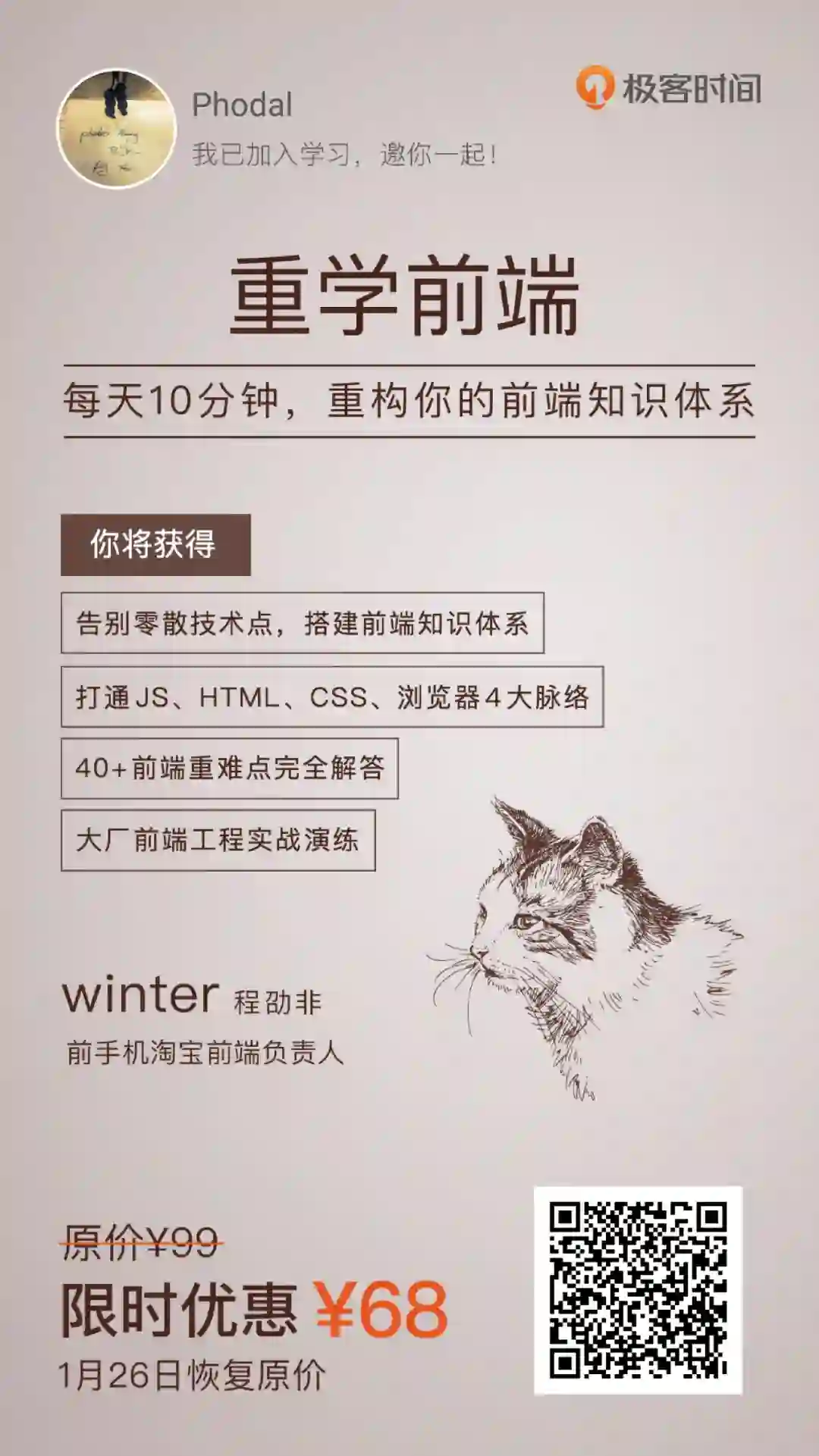 最近,听圈儿里的朋友说,这位怼天怼地的 winter 在极客时间开了个专栏?!你知道,那种平时插科打诨的人,要正经起来真能吓死个人。我自己都没忍住买个“试水深浅”,毕竟,评论区跟他互怼一番也是极好的。