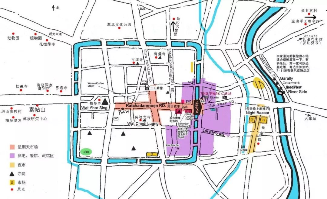 清迈的格局基本为:三面环山+一座四方老城+一条河,是个典型的山城。