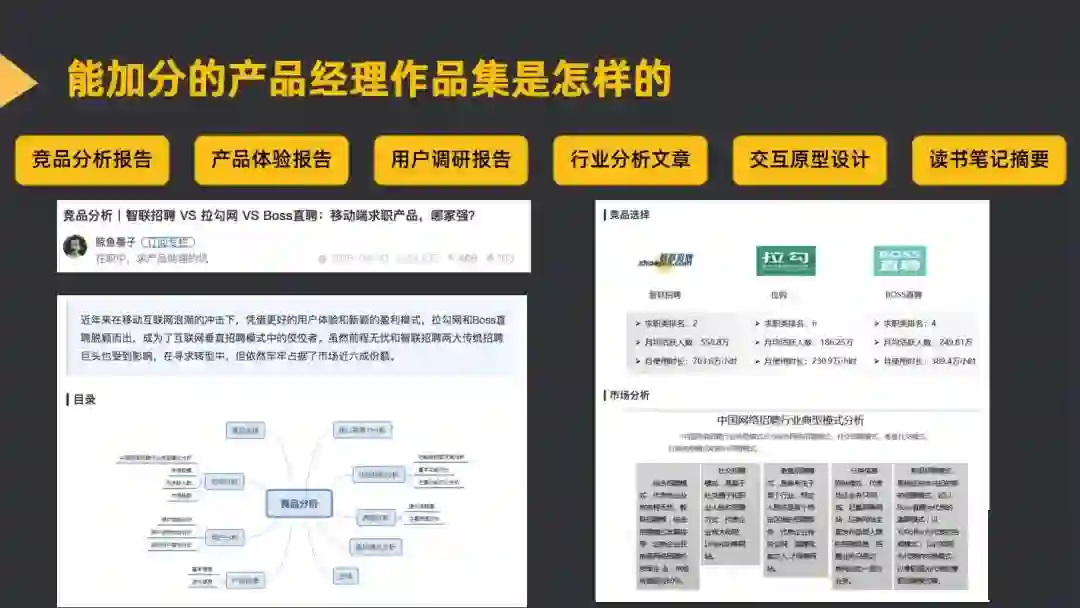 一份有说服力的作品集,它可以帮助你能更有力地传达给面试官:你是具备产品思维和产品能力的,你是可以胜任这个岗位;