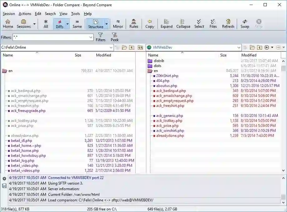 你可以选择两个文件,也可以选择两个文件夹,然后它就可以显示出不同的差异,可以将不同的内容选择合并保留,还可以直接忽略一边。