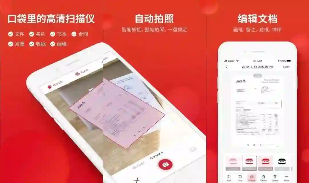 它不仅可以扫描文件,名片,合同,发票,收据等等。而且几乎所有文本内容它可以一键扫描智能识别内容。