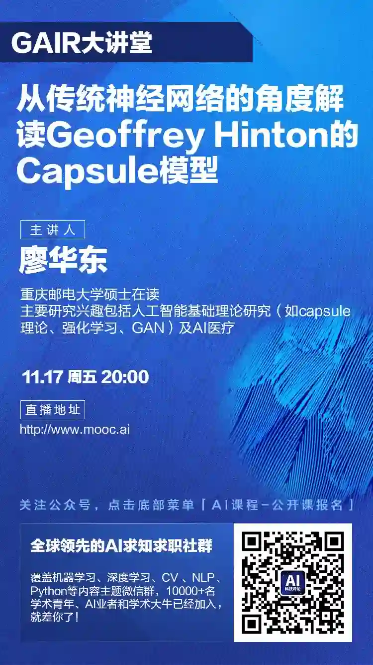 近几年,“深度学习之父”Geoffrey Hinton多次公开表示,认为卷积神经网络、反向传播算法存在不合理之处,提倡研究者们在深度学习之上积极探索人工智能的新理论体系,并率先提出了capsule理念。近日,随着论文《Dynamic Routing Between Capsules》在arXiv上的放出以及另一篇仍处于盲审状态的论文《matrix capsules with EM routing》在网上的流传,Hinton的capsule计划再度引发了热议。本次分享人作为全球第一个将capsNet模型复现代码发布到github的作者,将通过与传统神经网络的对比来深入解读capsule模型。(关注AI研习社,回复【论文】即可获取论文原文、翻译以及三种环境下的不同实现。)
