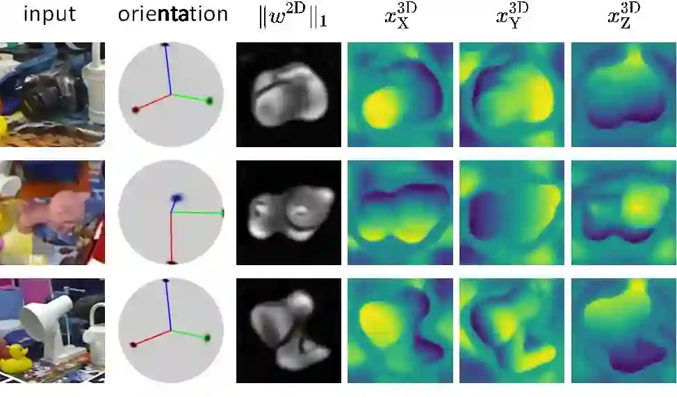 我们研究的是 3D 视觉中的一个经典问题:基于单张 RGB 图像定位其中的 3D 物体。具体而言,给定一张含有 3D 物体投影的图像,我们的目标是确定物体坐标系到相机坐标系的刚体变换。这一刚体变换被称为物体的位姿,记作 y,其包含两部分:1)位置(position)分量,可用 3x1 的位移向量 t 表示,2)朝向(orientation)分量,可用 3x3 的旋转矩阵 R 表示。