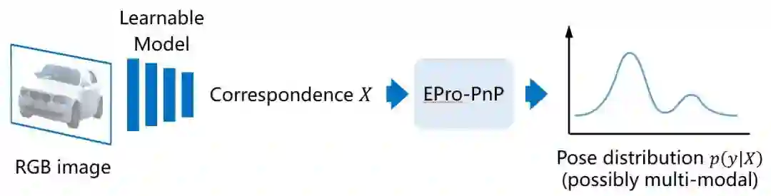 为解决这一问题,我们从理论出发,提出了 EPro-PnP 模块,其输出位姿的概率密度分布而非单一的位姿最优解,从而将不可导的最优位姿替换为了可导的概率密度,实现了稳定的端到端训练。EPro-PnP 通用性强,适用于各类具体任务和数据,可以用于改进现有的基于 PnP 的位姿估计方法,也可以借助其灵活性训练全新的网络。从更一般的意义来说,EPro-PnP 本质是将常见的分类 softmax 带入到了连续域,理论上可以推广至训练一般的嵌套了优化层的模型。
