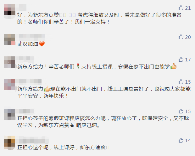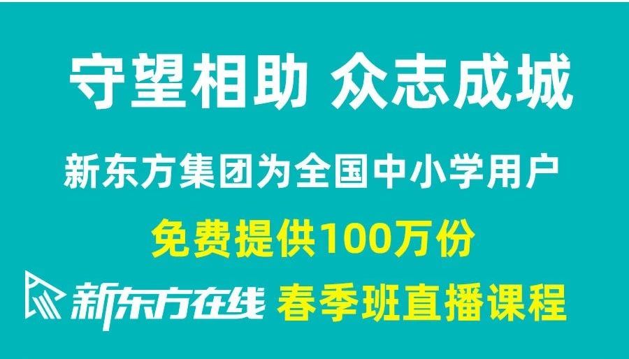 1 月 27 日,新东方宣布,免费为全国中小学生提供 100 万份春季班直播课程,并向多个城市医护人员子女免费提供「新东方中小学寒假班课程」(线上)。