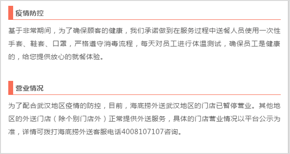本以为海底捞还是打算用「老本行」来应对这次疫情,谁知 1 月 26 日,海底捞宣布全国休市,外卖「海捞送」也停止了服务。