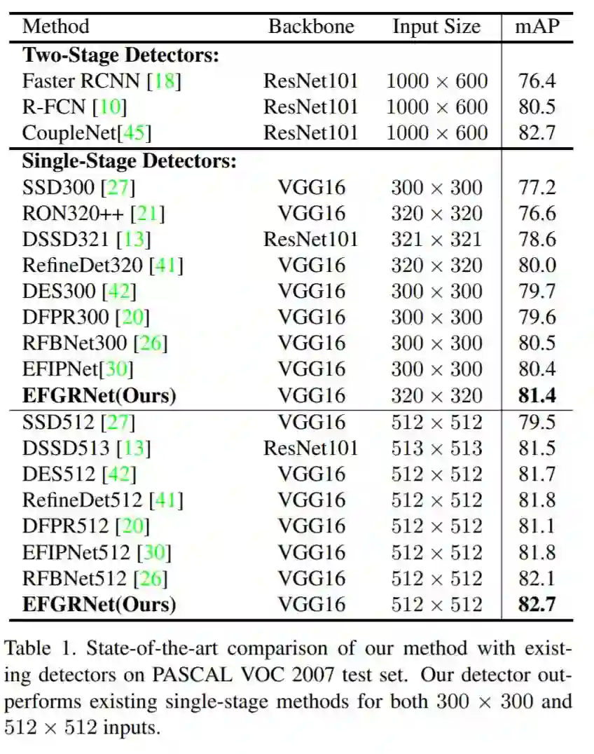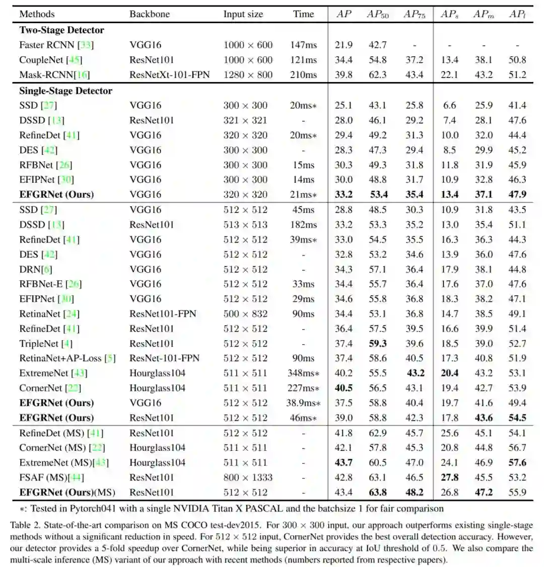 注:EFGRNet是基于SSD改进的Single-Stage检测网络,在COCO上可达46ms/39.0mAP(512x512),现已开源!