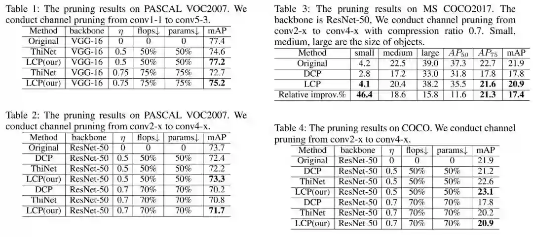 性能优于DCP、ThiNet,可对SSD剪枝70%参数