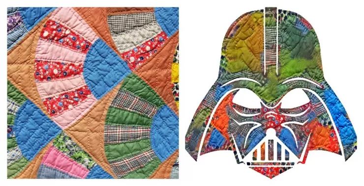 用被子图案生成的艺术品(见上方的Darth Vader)有着沿着边边的针脚,就好像布特地剪切好做出来的!用白噪声和内容图片生成图案或者直接从图案上剪切下来的时候就不会产生这样的情形。