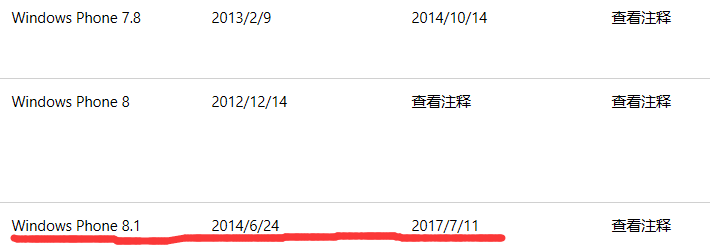 根据微软产品生命周期页面有关Windows Phone各版本支持信息显示,最后Windows Phone 8.1系统将在2017年7月11日结束主流支持。
