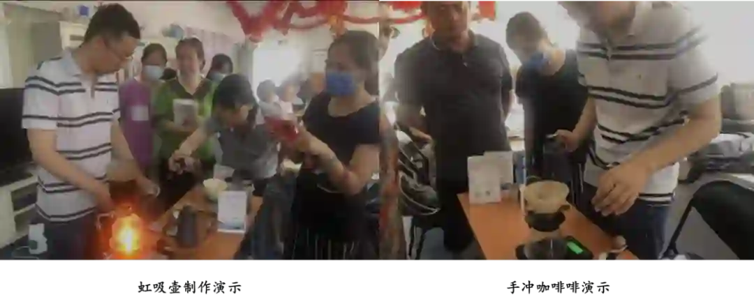 3 天左右的时间,让学员见识了虹吸壶、法压壶、手冲咖啡等精品咖啡的制作工具及制作方法,也普及了咖啡知识,让大家认识到了咖啡中的酸、甜、苦。也纠正了大家在之前听到的不准确或错误的知识点。