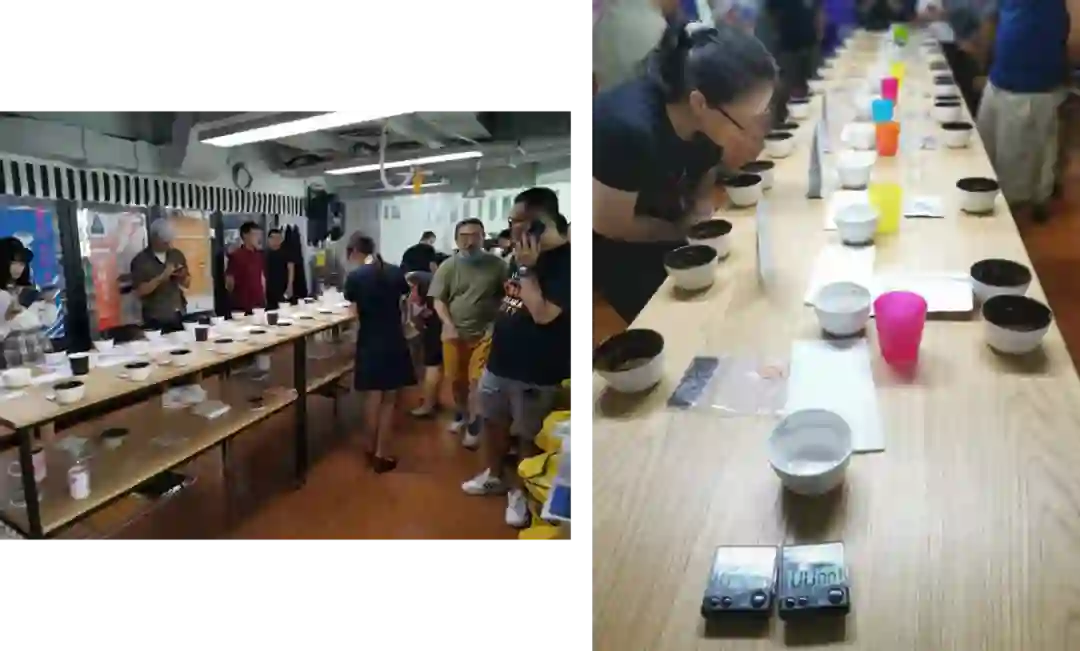 但是在展览上也能进行杯测,我也参与了三轮杯测,一直没有喝到心仪的豆子,但是在另一个生豆商那里找到了不错的豆子,我问的时候告知没货了,当时还是挺遗憾的。