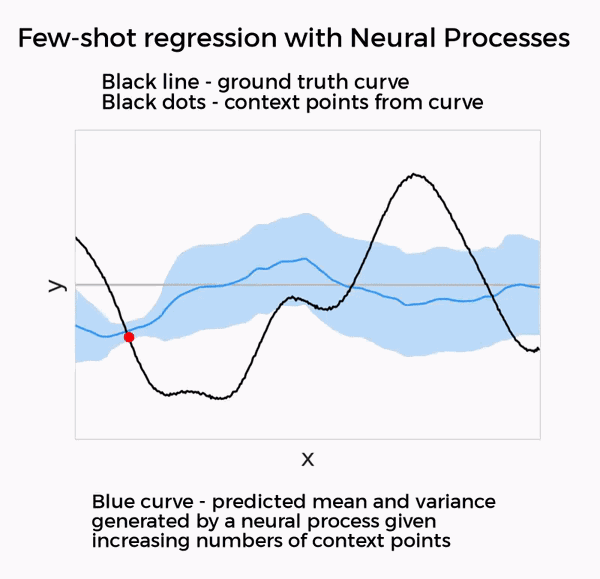 DeepMind认为,GQN创造的训练机制很不错。于是,他们在最新的两项神经过程(Neural Processes)研究中,将这种训练机制泛化到了回归、分类等其他小样本预测任务上。