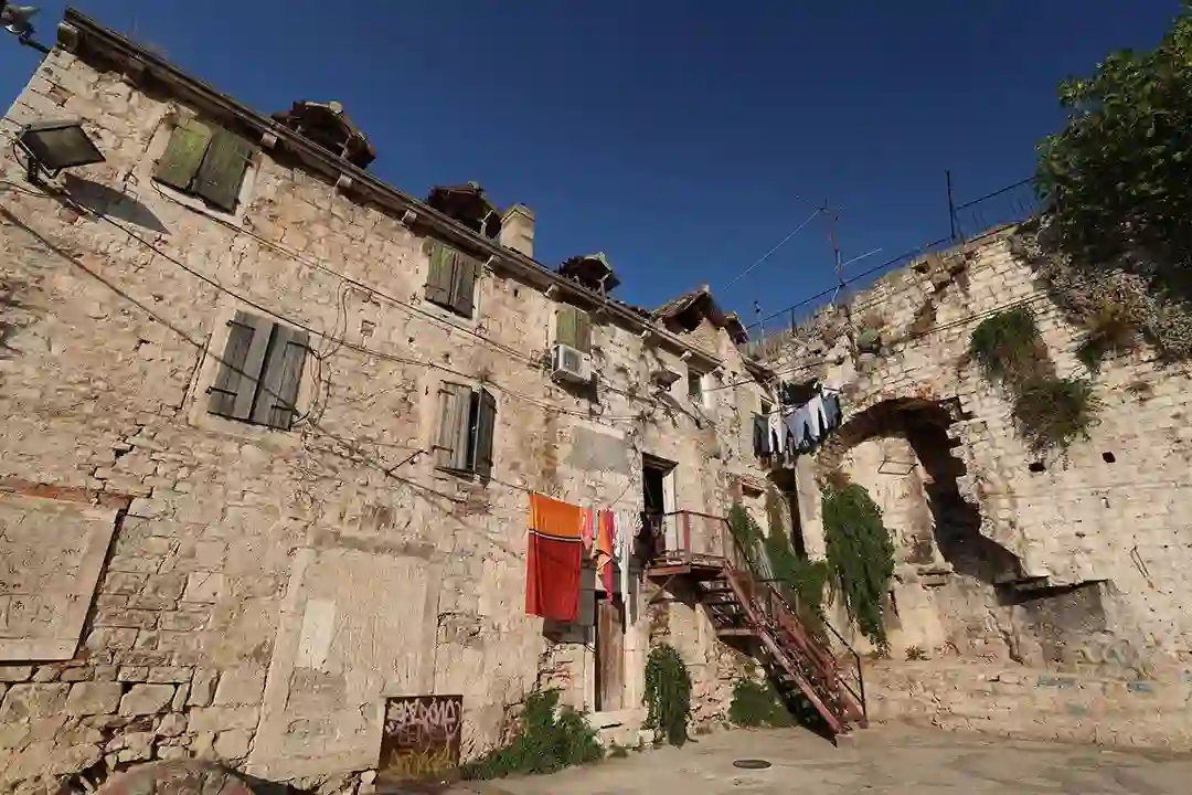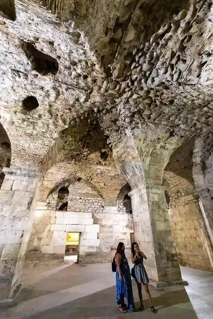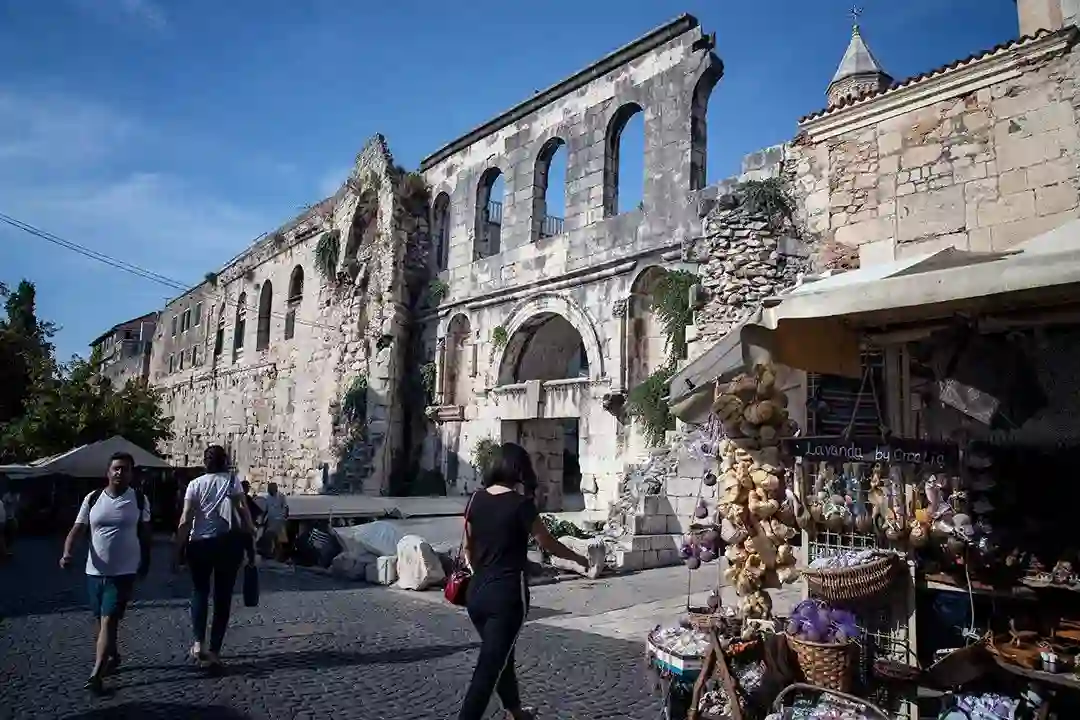 普利特的戴克里先宫,是一座建于罗马时代的皇宫。虽已成一片废墟,残垣断壁之下也能看出当年的工程浩繁,宏伟壮丽。走入巨大的石头宫殿里,阴森凄凉感扑面袭来。