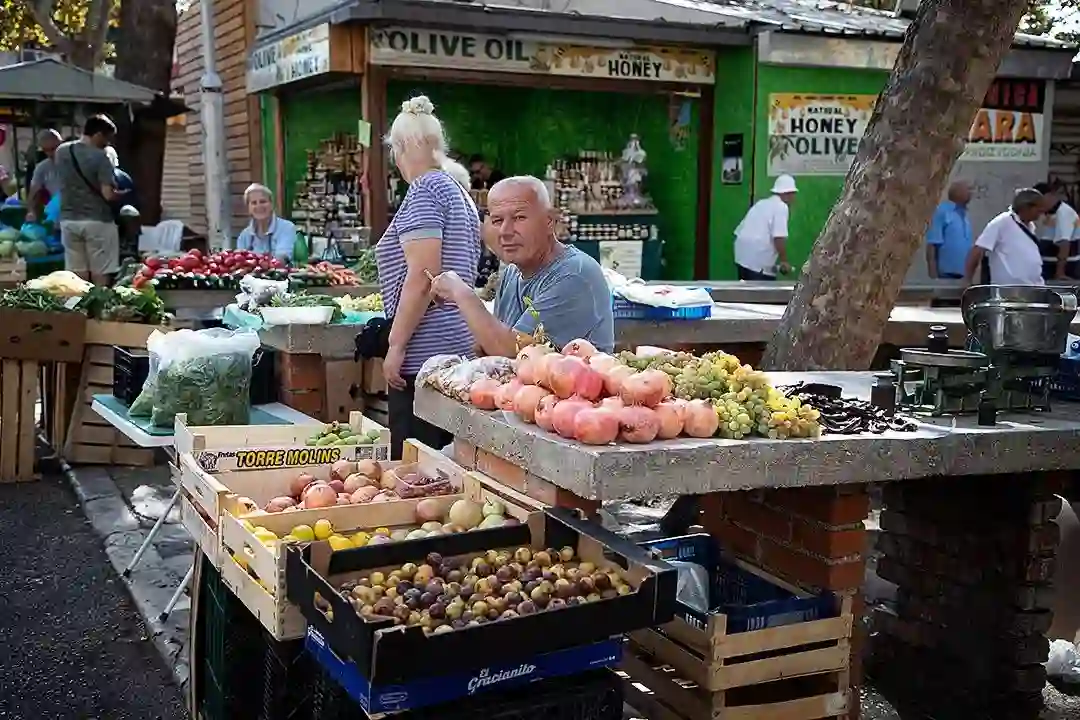 小广场上有个集市,当地人在售卖各种土产。无花果干是地中海特产,一粒粒饱满润泽,咬一口,柔韧的果肉中藏着无数个甜蜜的“爆珠”。古老的雕塑静静地俯瞰着热闹的集市,历史与现世就在这里无缝衔接。