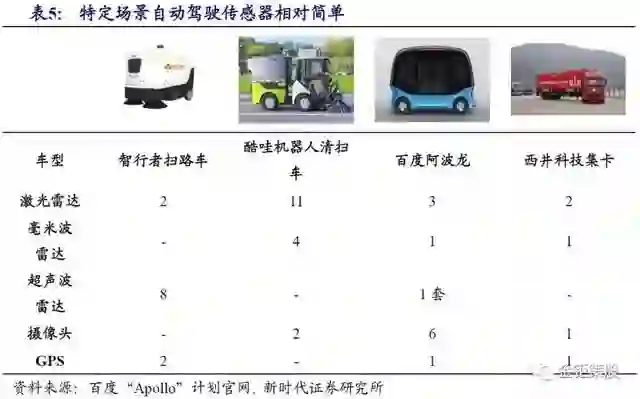 特定场景自动驾驶对传感器要求较低,简单的特定场景可以不需要激光雷达,稍复杂的场景,16线激光雷达和更低级别的雷达组合就可以满足需求。