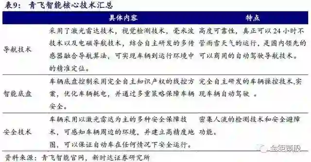 青飞智能具备工业园区行驶能力。青飞智能是一家商业化自动驾驶系统和车辆研发公司,致力于自动驾驶综合应用技术的研究和各类智能应用车辆的开发工作。在自动驾驶解决方案上,青飞智能采用的是多线激光雷达SLAM + 毫米波雷达技术+ 视觉技术多传感器融合技术,可在夜间极端天气下行驶。