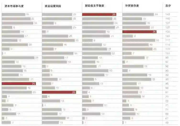 此外,位列总排名第五的厦门在“外贸依存度”和“物流效率”变量中分列第一和第二。