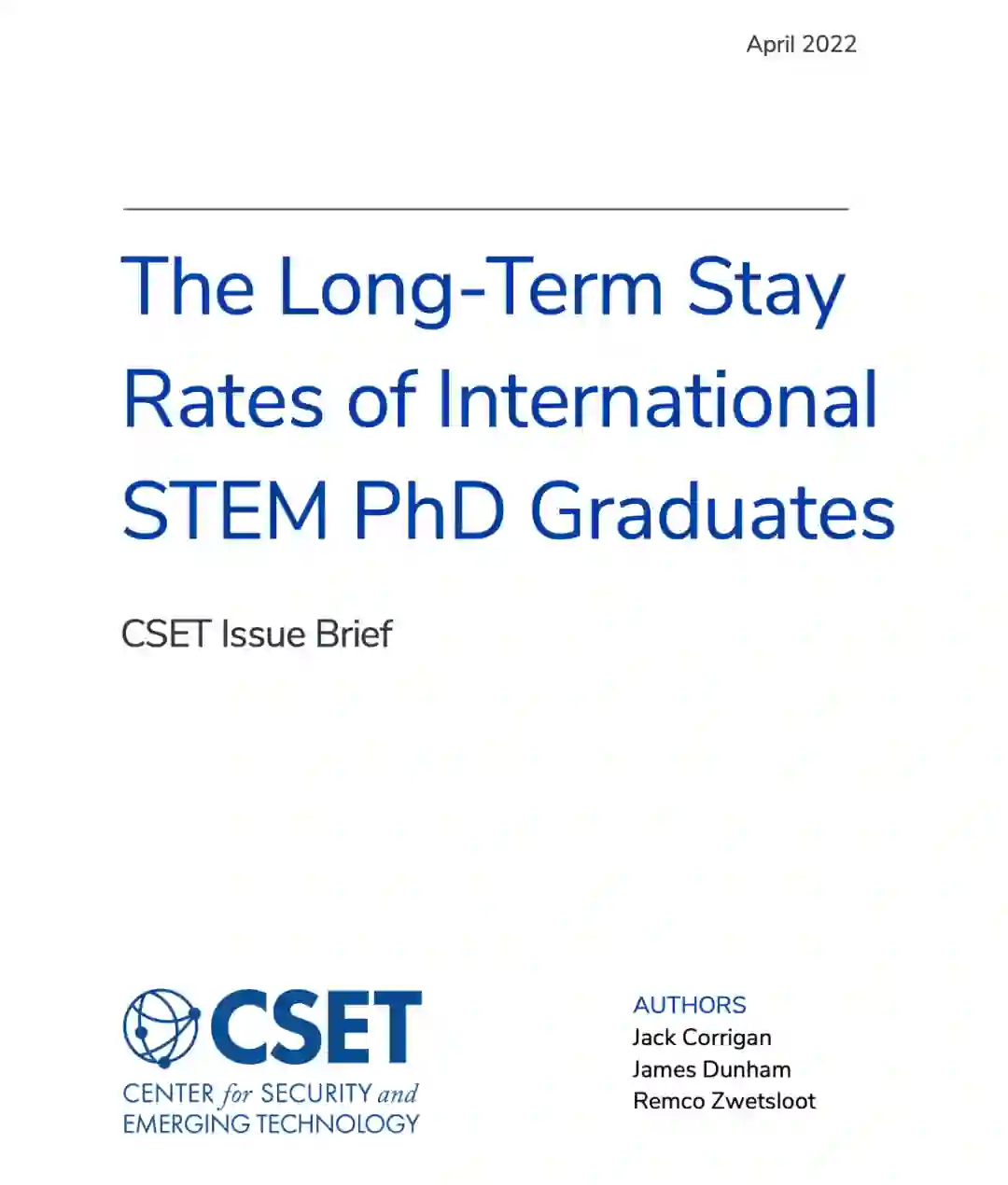 报告地址:https://cset.georgetown.edu/publication/the-long-term-stay-rates-of-international-stem-phd-graduates/