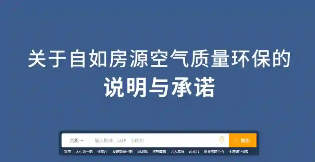同时自如还在官网发布了关于自如房源空气质量环保的说明与承诺