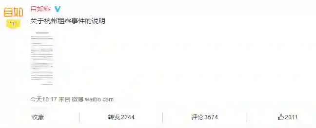 针对这一个突发性的消息,自如客在官方微博进行了回应