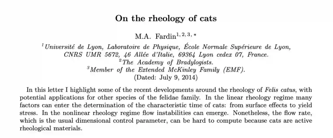 哦,还有这个拉长猫,你看到的是一个表情包,但有人却看到了流体力学,还为此一本正经地写了篇论文: