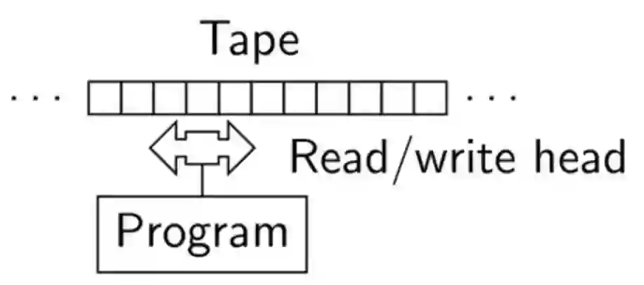在一条无限长的纸带(tape)上,一个读/写头进行移动,或按照特定的指令集执行更加复杂的行为: