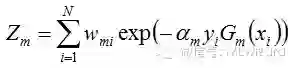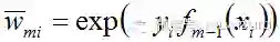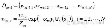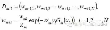 其中,Zm是规范化因子,使得Dm+1成为一个概率分布: