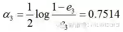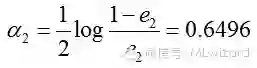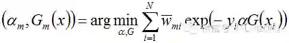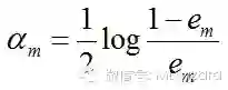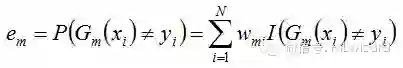 c.计算Gm(x)的系数,am表示Gm(x)在最终分类器中的重要程度(目的:得到基本分类器在最终分类器中所占的权重):