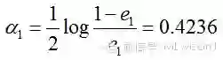 这个a1代表G1(x)在最终的分类函数中所占的权重,为0.4236。
