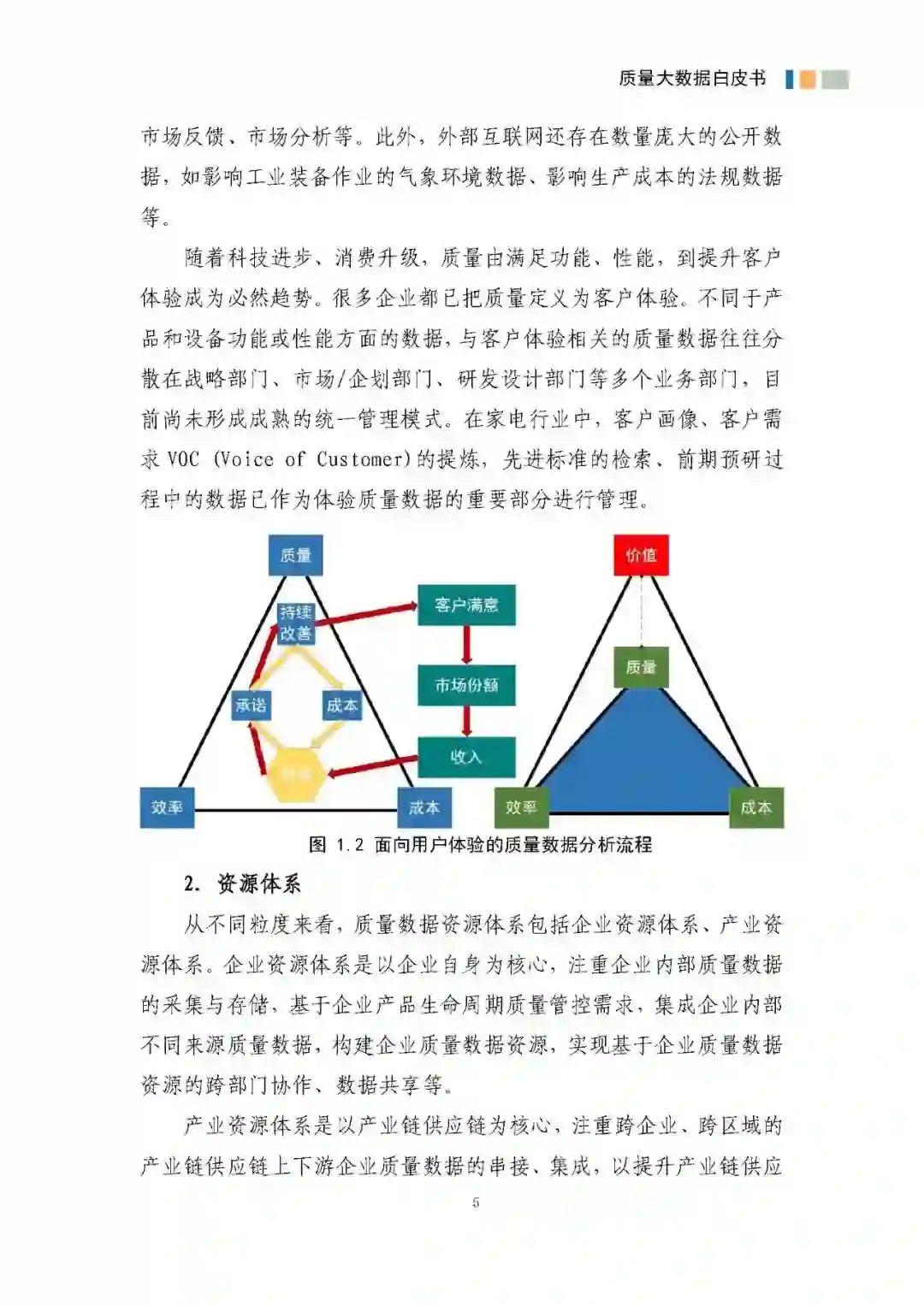 《白皮书》围绕质量大数据的边界内涵、架构体系、资源建设、实施路径、发展趋势和实践案例等方面进行研究。《白皮书》给出质量大数据参考架构统领全文,包括数据视角、技术视角和业务视角三大视角,其中数据资源是价值起点,技术支撑是工具,业务落地是目标,数据、技术、业务三个视角统筹推动质量大数据的建设。