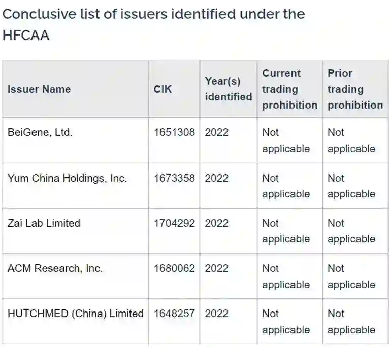 如果「确定摘牌名单」中的公司没有提交或提交的文件不符合 SEC 要求,连续三年被认定为被识别公司,理论上则会在 2023 年年报后(即 2024 年初)面临退市。