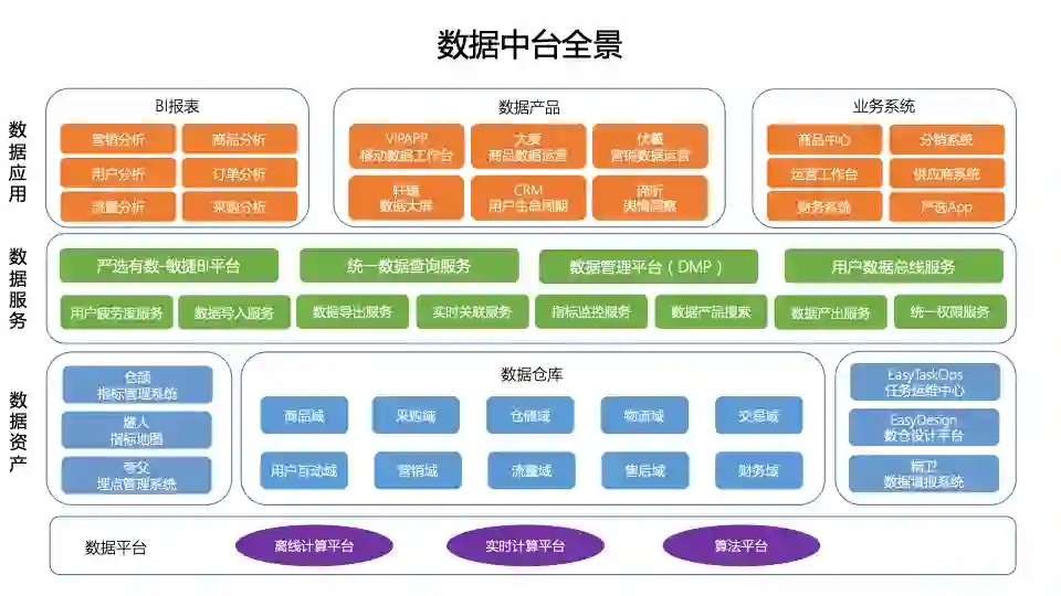 在其他工种开发的眼里,数据仓库的入门门槛非常低,低到技术鄙视链的最末端:“噢……,他们就是写SQL的,他们整个团队都是写SQL的……”,顿时天空飘过一万匹神兽。曾经和未来都有很多人会来挑战数仓工程师存在的意义:“我也能干!”,但是实际情况是:naive!具体可参见严选数据仓库的架构图,这其中的每一个icon背后都有一套工具、平台,甚至于一个团队来支撑运转。